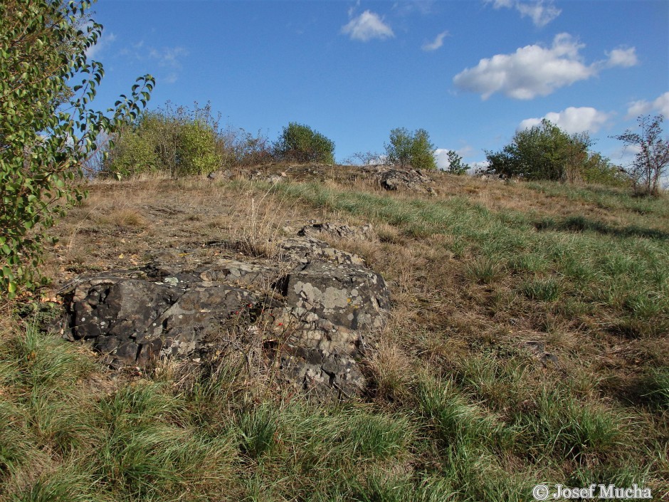 Kopeč u Odolene Vody - skalky metabazaltu (albitizovaný spilit) - vyvřelé horniny neoproterozoika (starohory - stáří hornin vívce než 600 mil.let) Fotogalerie: Kopeč u Odolene Vody